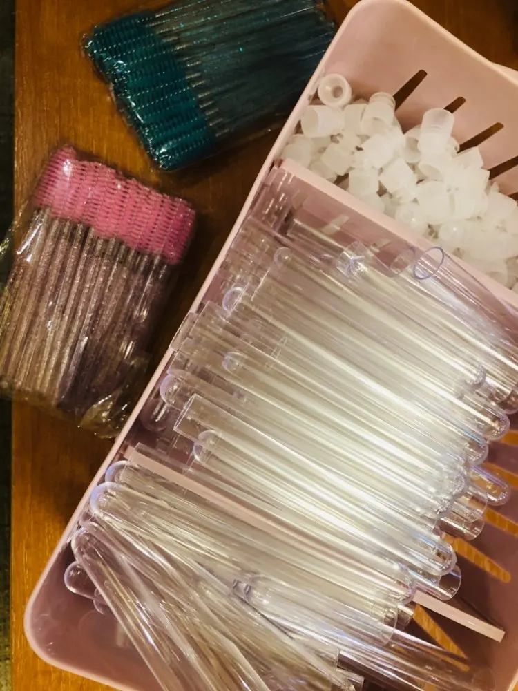 Заказала 03.08 приїхало 13.08 )) Приїхали всі 50 Шт і всі цілі . Підходить на щіточки для нарощування вій