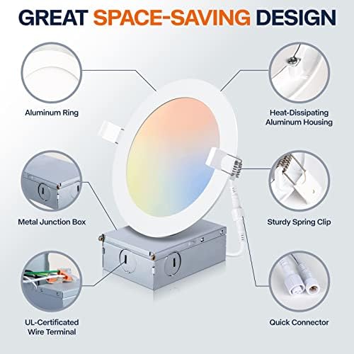 6 Pack Recessed Lighting 6 Inch, Recessed Gentle Fixtures 5CCT, 5 in 1 Extremely-Skinny Downlight 15W=120W Dimmable 2700K-6000K Selectable, 1200LM LED Recessed Gentle with Junction Field – ETL & Power Star