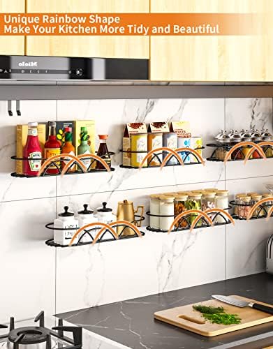 【Rainbow Form & Giant Capability】 The spice racks has a singular rainbow form and the 6 hanging spice rack mean you can place not less than 72 4oz spice bottles! In the meantime, the semi-circular guard design of the cupboard organizer matches the bottles higher and saves more room!