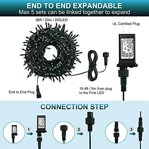 66Ft Blue Outside Christmas Lights, 200LED Mini Blue String Lights with 8 Lighting Modes, Connectable Twinkle Fairy Lights for Patio House Vacation Wedding ceremony Get together St Patricks Day Decor