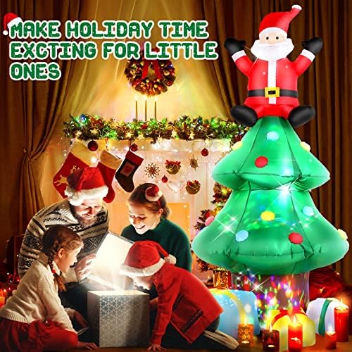 6FT Christmas Inflatables Tree Ornament with Santa Claus,Multicolored Reward Bins,Christmas Tree LED Mild Up Vacation Occasion Indoor Backyard Patio Garden Ornament