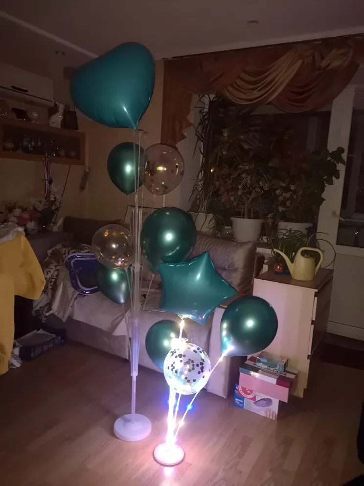 Balls are cool. Ordered a child for the birthday. Foil hearts of large sizes. On the photo for comparison put a hand on the ball. Sprockets of medium size. What I liked about these balls, they do not need to be tied. Inflated and then sealed the valve back. The usual balls are slightly larger than the stars. Maybe inflate even more, but they did not risk it anymore. The goods are very davolno. Thank you to the seller for the fast delivery. To the Yaroslavl region went a little more than a week.