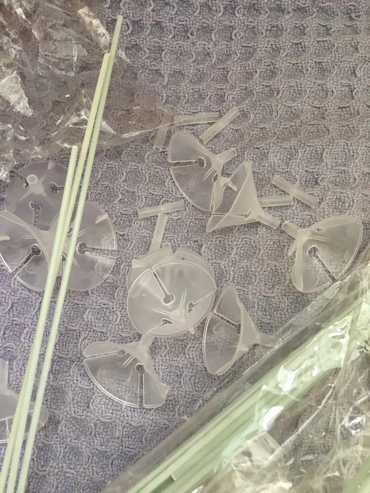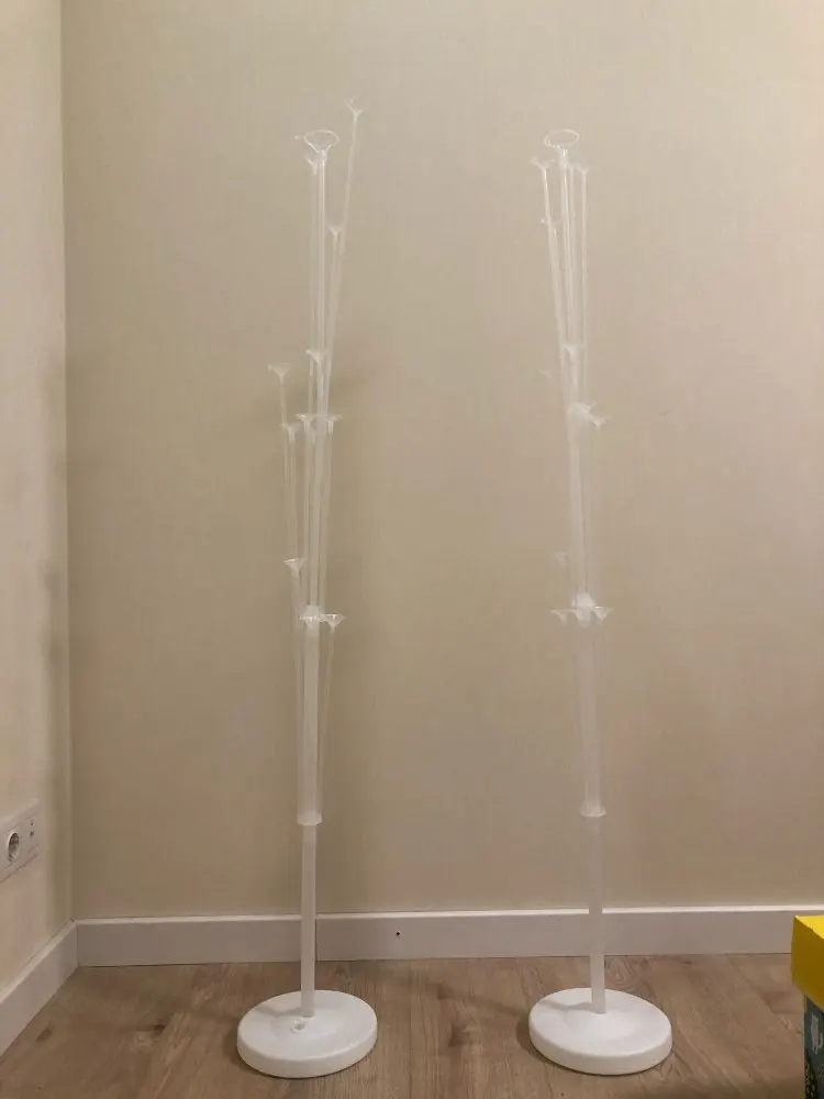 Кое-какие запчасти в одном из комплектов были погнуты или сломаны, и это при том, что все было хорошо упаковано. Это немного разочаровало. Но в целом подставки очень хорошие, высокие, собираются легко на интуитивном уровне. За счёт палочек разной длины и надставок для них, можно комбинировать высоту шариков в каждом ряду. На фото всего три шарика для пробы, но держатся они крепко. Уверена, что при полном заполнении подставки шариками, все будет смотреться офигенно!❤️ Пришло все довольно быстро, полностью отслеживалось от начала и до конца. Заказом очень довольна! Всем очень рекомендую продавца и данный товар!
