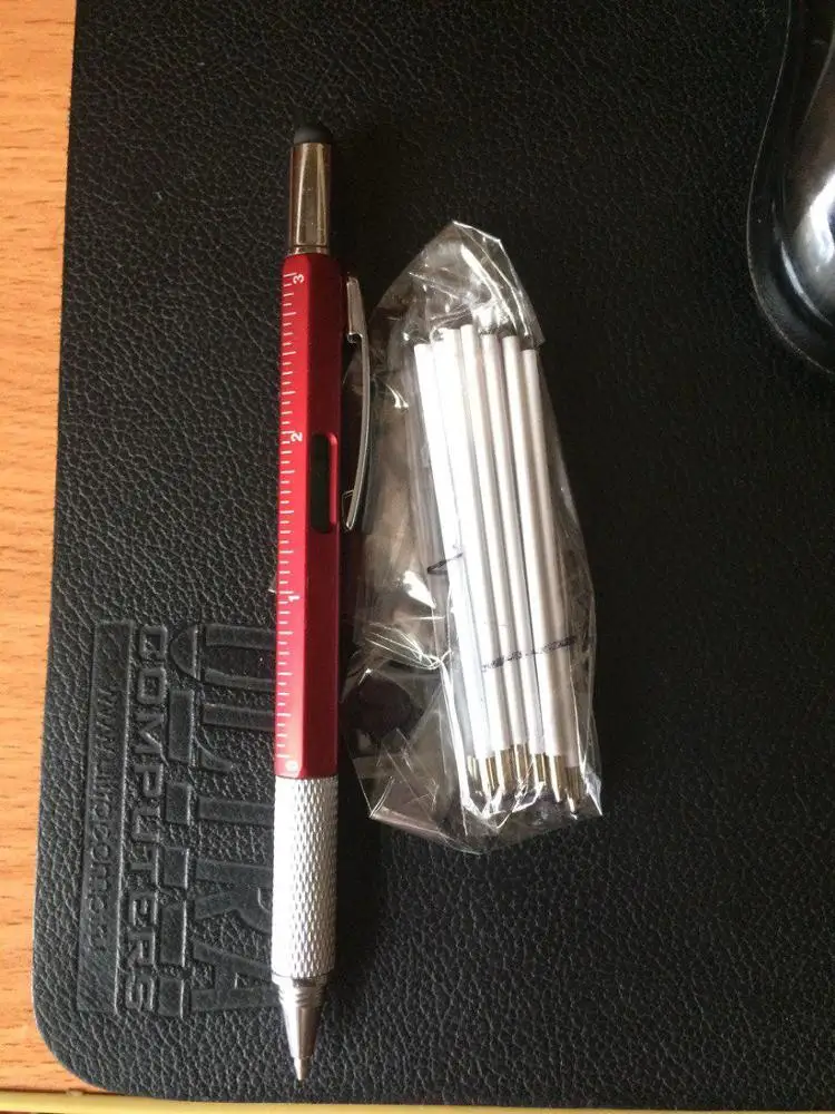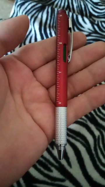 Delivery is 2 months. The pen writes perfectly, but the rod is short. The body is quite strong plastic. The rod is retractable by twisting the handle. By functionality-everything is as stated: a pen, a flat and figured screwdriver, a stylus, level and ruler. Of the minuses-a small defect in painting the body (spot) and more, that do not match the zero marks of the lines in inches and centimeters. But despite this handle is good, I liked it, thank you) I recommend the seller.