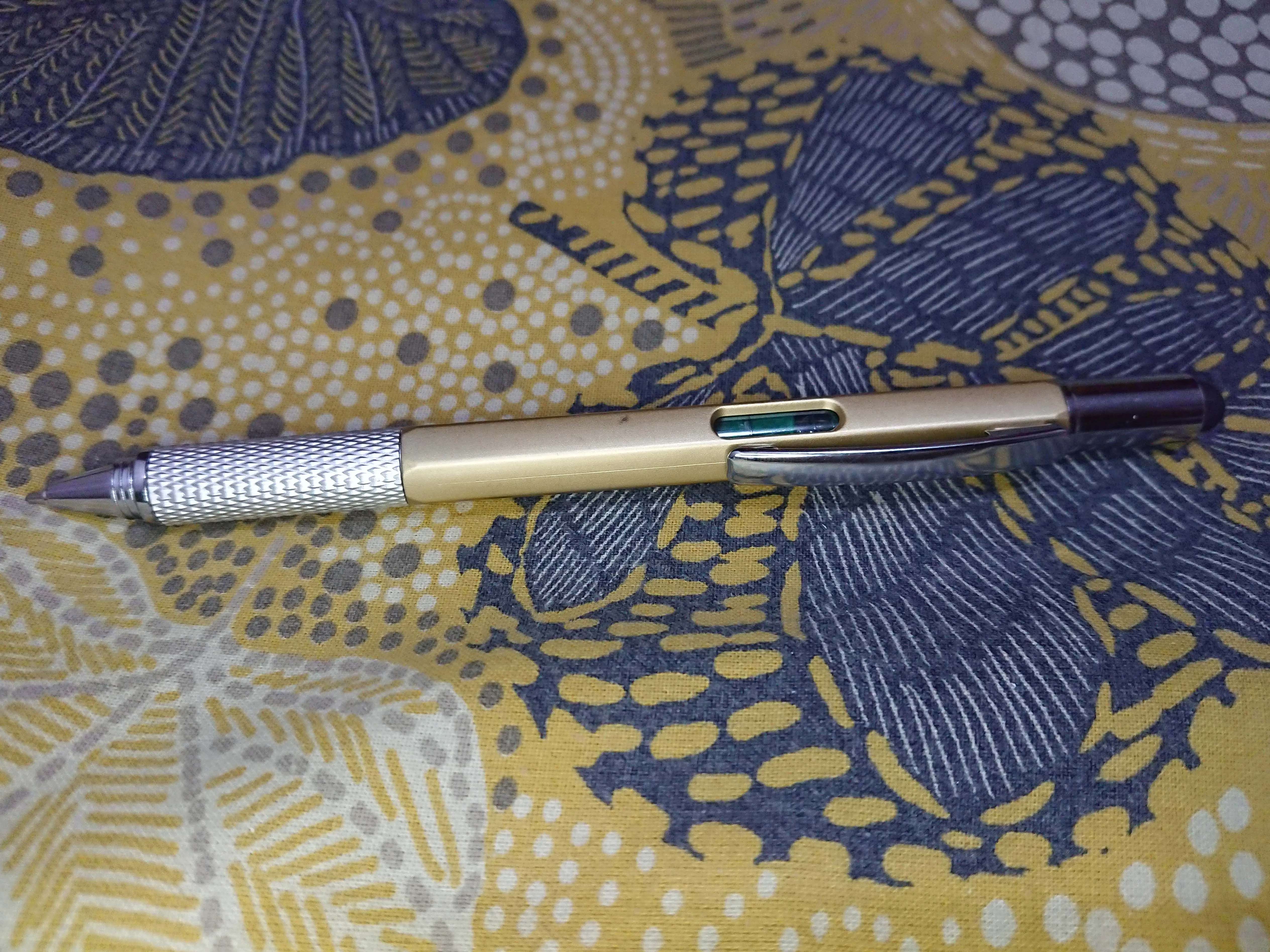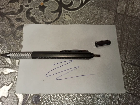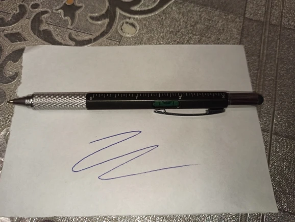 Отличная ручка, прекрасно пишет. 5 в 1, есть линейка, уровень, отвёртка, стилус и конечно же сама ручка. Рекомендую товар и продавца
