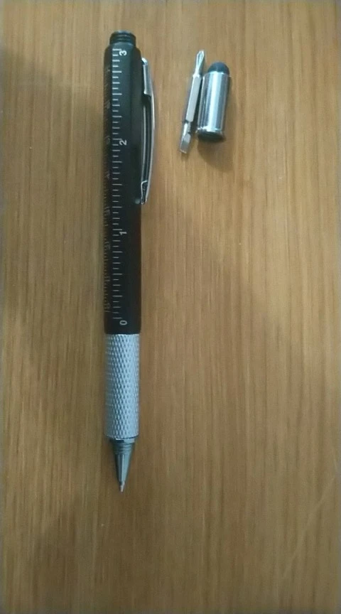 Very useful to carry with you, 6-in-1: flat and phillips screwdriver, touch panel ‘stylus’, bubble level, ruler and pen.