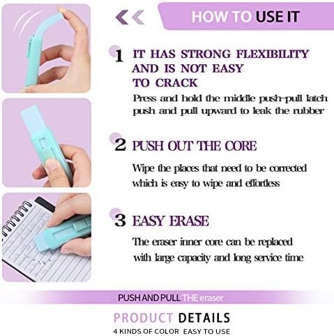 Bundle Accommodates: you’ll get 8 items of retractable aesthetic erasers in 4 colours, together with inexperienced, blue, pink and purple, 2 items for every coloration; Enough amount and coloration in your day by day alternative
