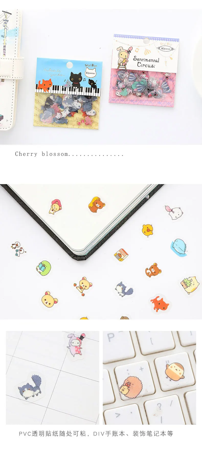 80 pcs/bag Japanese Stationery Stickers Cute Cat Sticky Paper Kawaii PVC Diary Bear sticker For Ornament Diary Scrapbooking