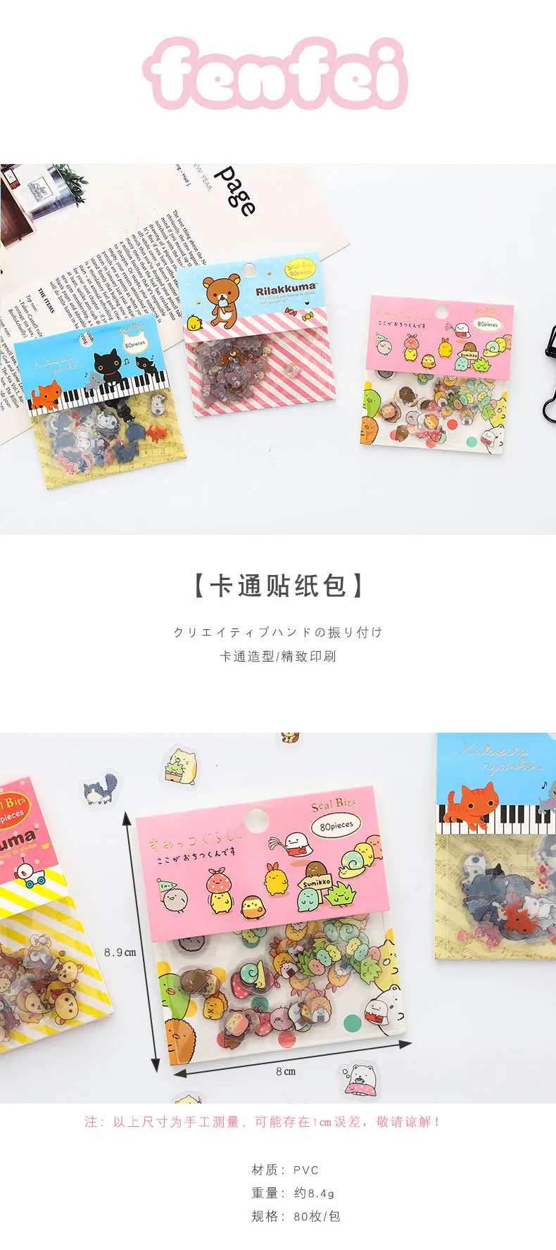 Specification: 80 pcs/bag Japanese Stationery Stickers Cute Cat Sticky Paper Kawaii PVC Diary Bear sticker For Ornament Diary Scrapbooking