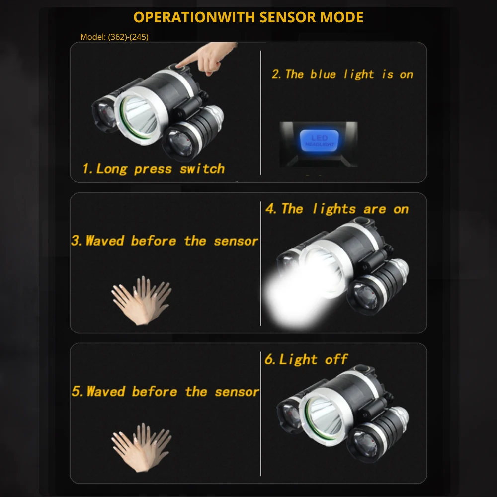 3xT6 LED Sensor Headlamp (DC Charging Port)