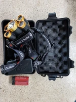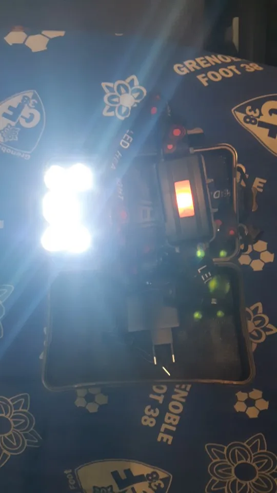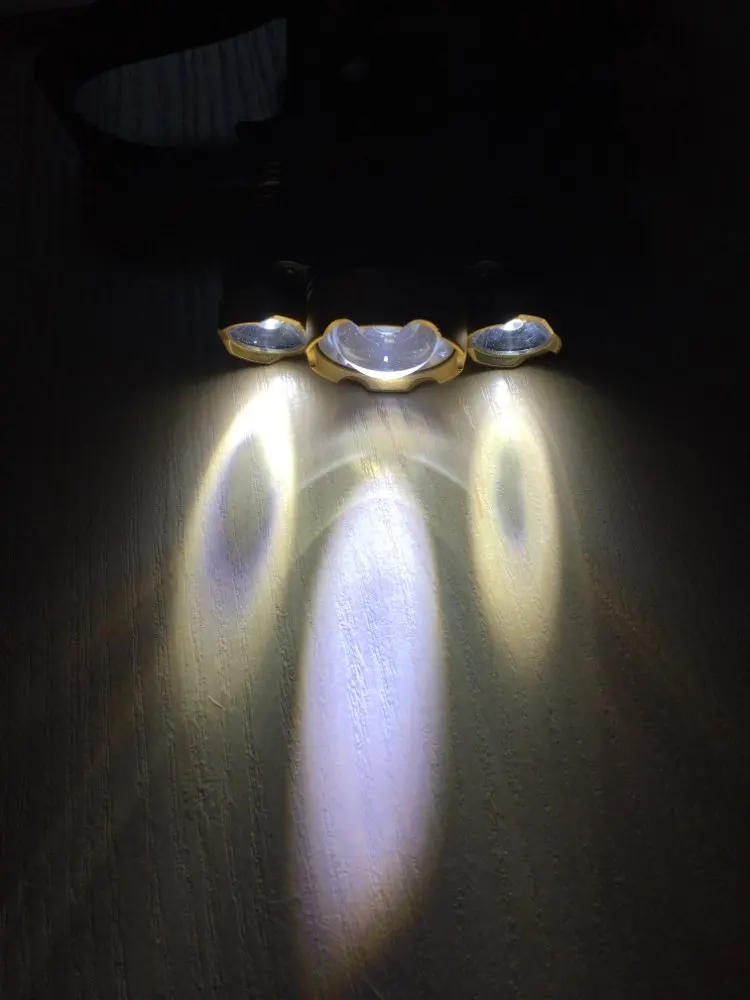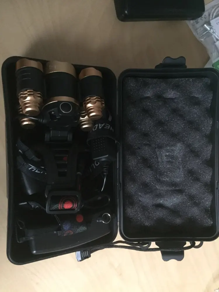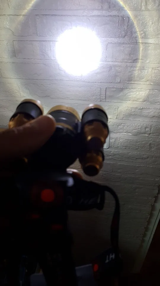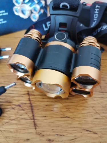 Lantern cool! Manufactured qualitatively, the plastic is good. Balanced by weight. Fixed well. Weight with 270g batteries. The box with batteries is closed with a soft rubber cover, so it does not press on the back of the head. The lid is attached with metal. Ring. Red light blinks behind. Focus of the central lantern I think not a bad thing. Sensor, range, etc. I haven’t checked yet. I do not regret what I took in the case.