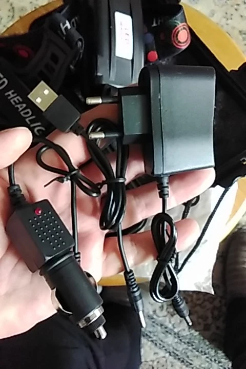 Package deal E contains: 1 Headlight ,1 Micro usb cable , 1 automotive charger , 1 DC charger , 2* 18650 Batteries