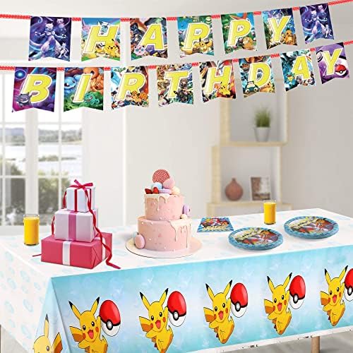 82 Pcs Cartoon Celebration Provides Pok-mon Birthday Celebration Provides Ornament Contains 1 Banner, 1 Tablecloth, 40 Plates, 40 napkins, Boy Lady Children Child Bathe Celebration Favors (40 company)
