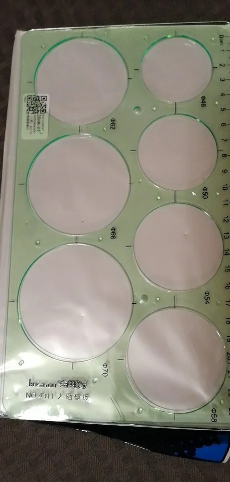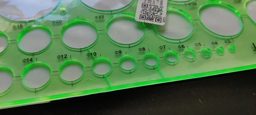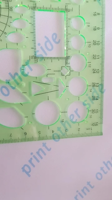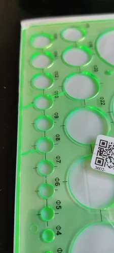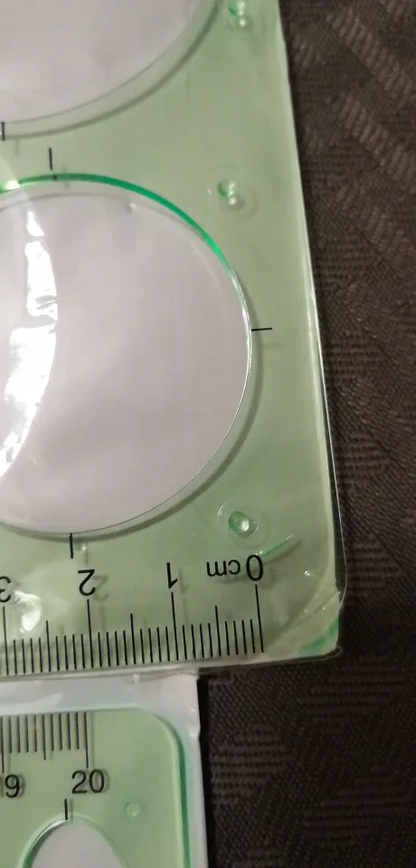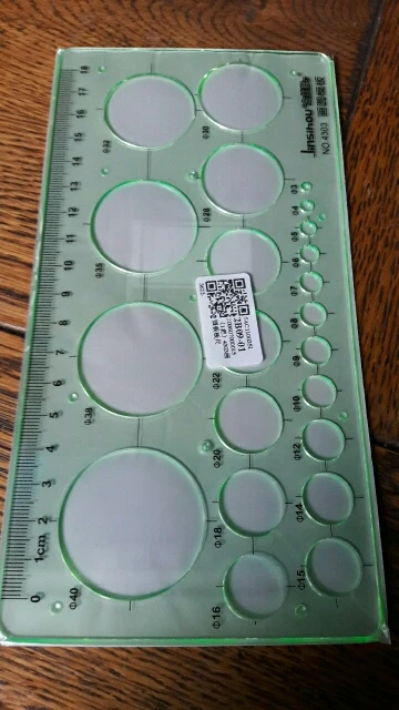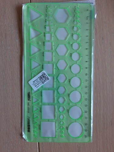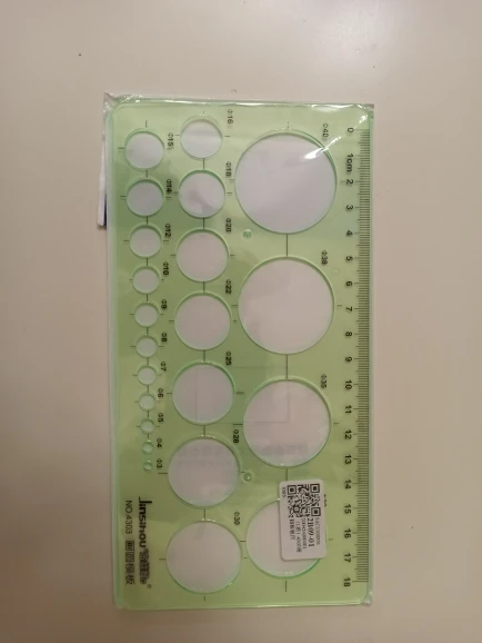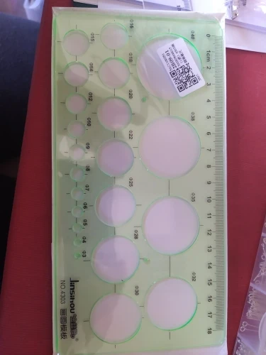 Mooie heerser verschillend kleine rondjes. Ben heel blij met de heerser. Er is niks gebroken of kapot. Bedankt verkoper