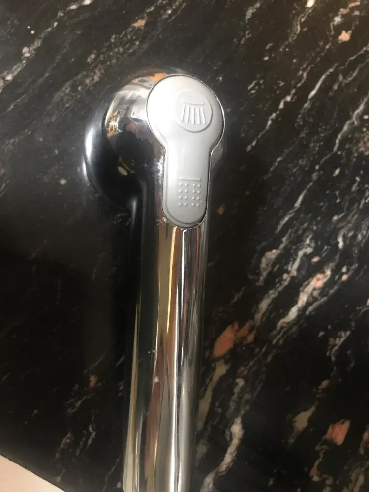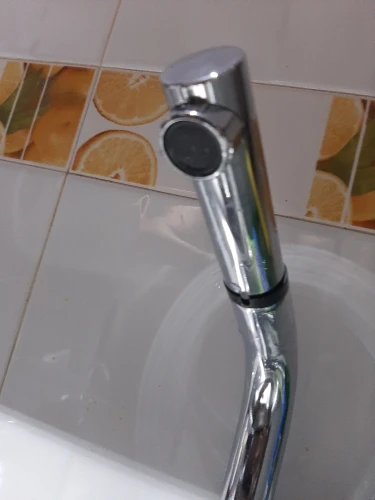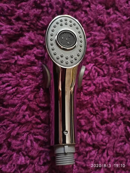 Good quality shower for kitchen faucet, but if you only buy shower, please note that it is combined with your crane. I had to cut a piece of plastic to be inserted into the groove in the original crane, I don’t have that. The shower on the faucet turns off with another click on the next button.