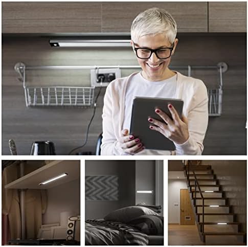 aceyoon Below Cupboard Mild, Rechargeable Movement Sensor Mild, 3 Coloration Stepless Dimmer Mild, 58LED Magnetic Below Counter Lighting Stick-on Wardrobe Mild for RV, Cabinet, Storage, Stair (2 Pack)