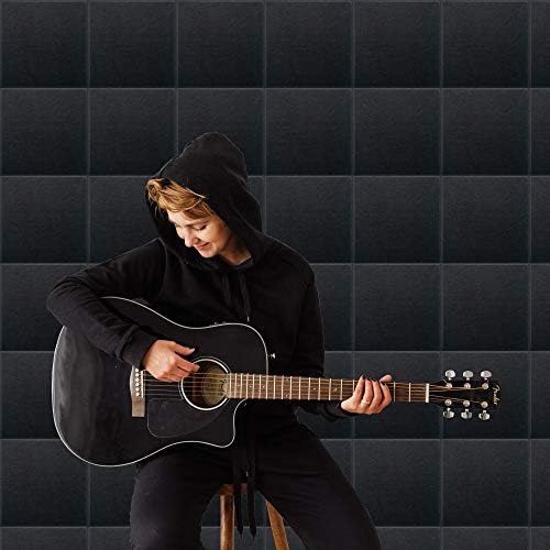ACUSTRIX 12 Pack Soundproof Padding Acoustic Panels – Nice for Noise Discount – Sound Absorption Wall Ornament, Acoustic Therapy, House Studios, 12” x 12” x 0.4” (Black)