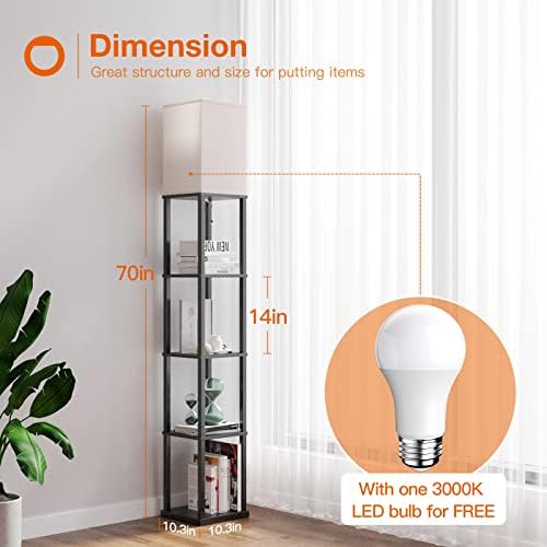 addlon LED Trendy Shelf Ground Lamp with White Lamp Shade and LED Bulb, 5-Tier Show Ground Lamps with Cabinets for Dwelling Room, Bed room and Workplace – Black