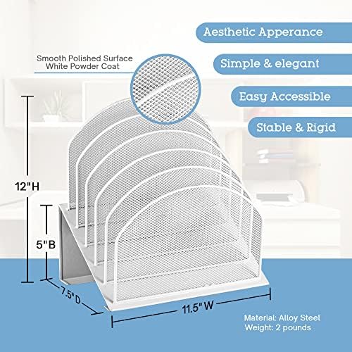 Adir Mesh Desktop File organizer – Mail Sorter Paper Folder Holder with 5 Inclined Dividers For Dwelling Workplace Or Any Desktop (white)