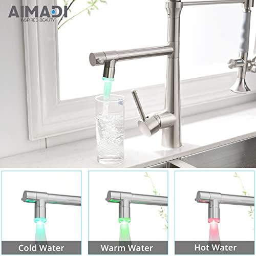 AIMADI Pull Down Kitchen Faucet with Sprayer,Industrial Single Deal with Stainless Metal Brushed Nickel Kitchen Sink Faucet with LED Mild