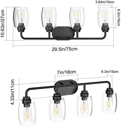 Be the first to review “Aipsun 4 Lights Black Vainness Gentle Fixtures Over Mirror with Clear Glass Shades Industrial Wall Gentle Fixture for Toilet(Exclude Bulb)”