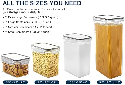 【Mixture of Selection Sizes】Your full bundle contains 5 additional massive containers (11.83 cups /2.8 liters), 8 massive containers (8.45 cups /2.0 liters), 5 medium containers (5.92 cups /1.4 liter), 5 small containers (3.38 cups /0.8 liters). Free measuring spoon set & 30 reusable chalkboard labels