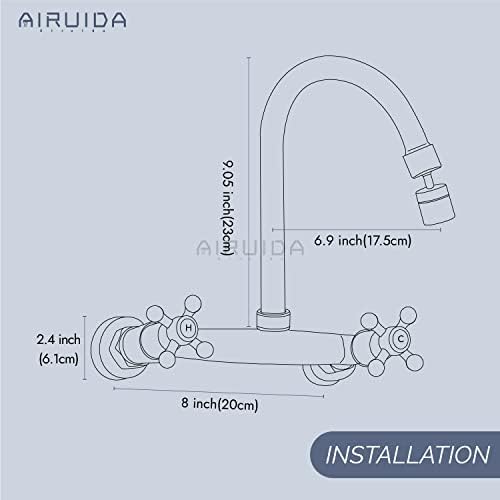 Be the first to review “Airuida Vintage Brass Wall Mount Kitchen Sink Faucet 8 Inch Heart Double Cross Handles 360 Diploma Swivel Spout Kitchen Mixer Faucet Industrial”