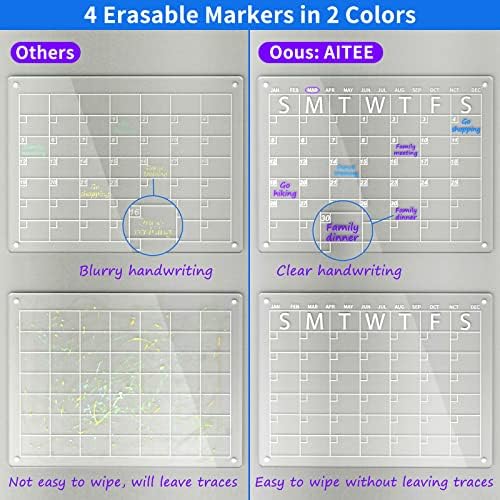 AITEE Acrylic Magnetic Dry Erase Board Calendar for Fridge, 16″x12″ Inches Clear Dry Erase Calendar for Fridge Consists of 6 Dry Erase Markers with 3 Colours