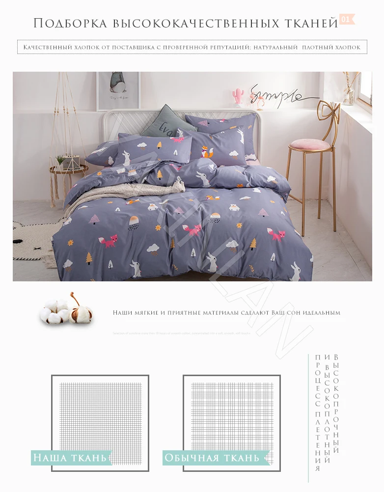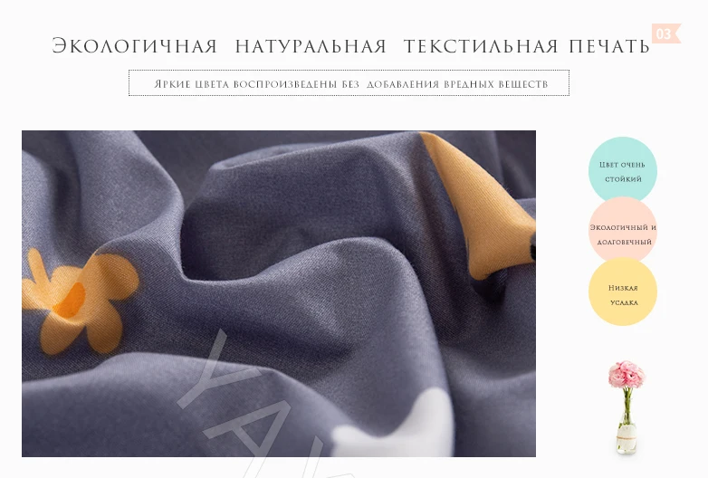 Excellent bed linen, not 100% cotton of course, synthetics are clearly present, but also cotton is. Quite dense, after washing did not sit, did not shed. Dries quickly and even iron is not particularly necessary. The colors are cheerful, in short, everyone liked the delivery of a fast courier to the house, as a gift notepad, but the package of branded me for some reason, they did not put… it is visible that they ended