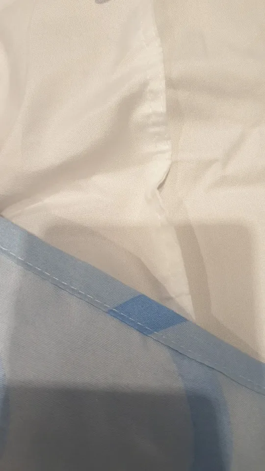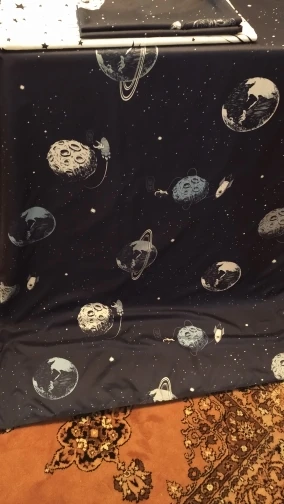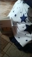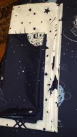 Круто, я пока утюжила, не нашла ни одного недостатка) Абсолютно довольна этим комплектом! Сшито и раскроено ровно, ткань плотная, без брака (в прошлых заказах были кой-какие дефекты). Простынь белая со звездами (на фото магазина ее было не видно), все остальное темно-синее космическое, очень четкая, красивая расцветка (номер HD-1006). Конечно, хб не ждите, утюг прилипает на полной мощности. И кошачья шерсть тоже липнет хорошо. Строчки ровные, странно отстрочено двойным швом на лице, я такого не видела раньше) Жаль, что наволочки без молний, ну сама втачаю.