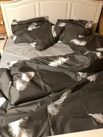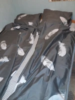 Order sent very fast, in 4 days,, but sdek did and I received the goods only in a month. The kit liked, beautiful, painted well, the colors match the photo 100%, the quality of tailoring is not bad very, but there are doubts about pure Cotone. The packing is very good, in dense plastic. But on the duvet cover found 4 spots of incomprehensible origin. Because the packaging was not broken, the stains took place already when sending the goods. This is a bad attitude to the buyer. I’ll open a dispute. I recommend the product.