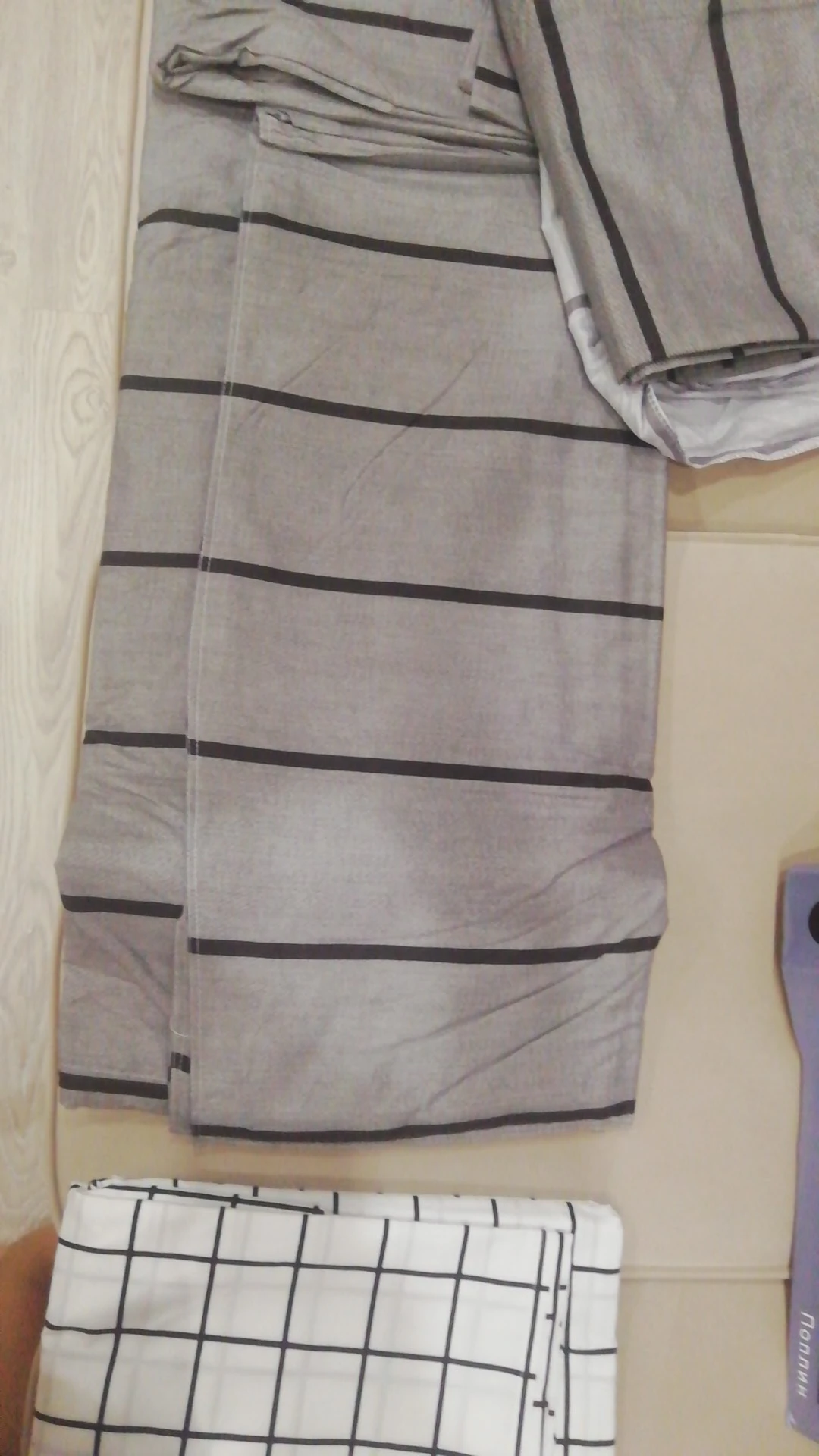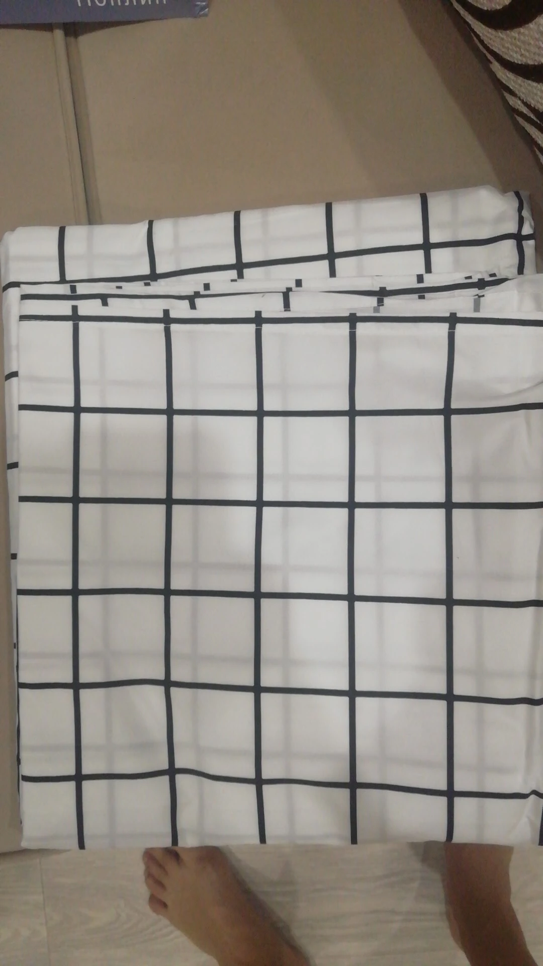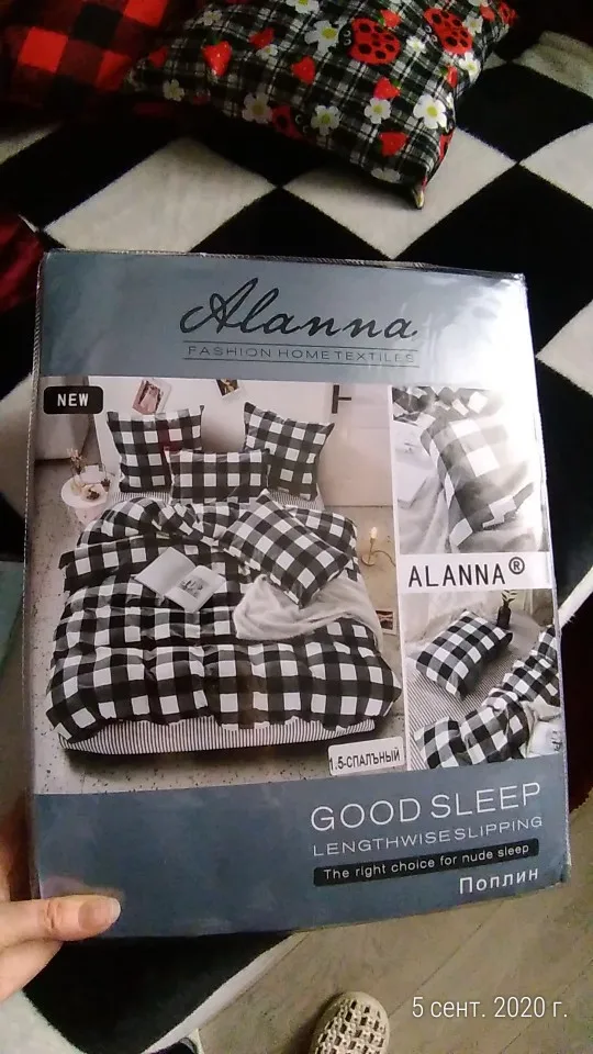 Excellent bed linen! The fabric is similar to the one stated in the description-Poplin. The family set consists of 4 pillowcases (2-50 × 70 cm and 2- 70 × 70 cm),2 semi-double duvet covers and sheets of another, but very suitable color-strip)) duvet covers with a zipper. The lines disappointed, not even, the technology of manufacture is far from ideal… but here the factor is the price. I ordered a set with an orthopedic pillow and the price sooo pleased) put a gift-napkin from gauze)) I came to order in 8 days, but I chose the day of delivery myself. The package was impressed: Branded in linen, then a postal package, then a dense black package-100% of safety! See pictures, order, you will not regret
