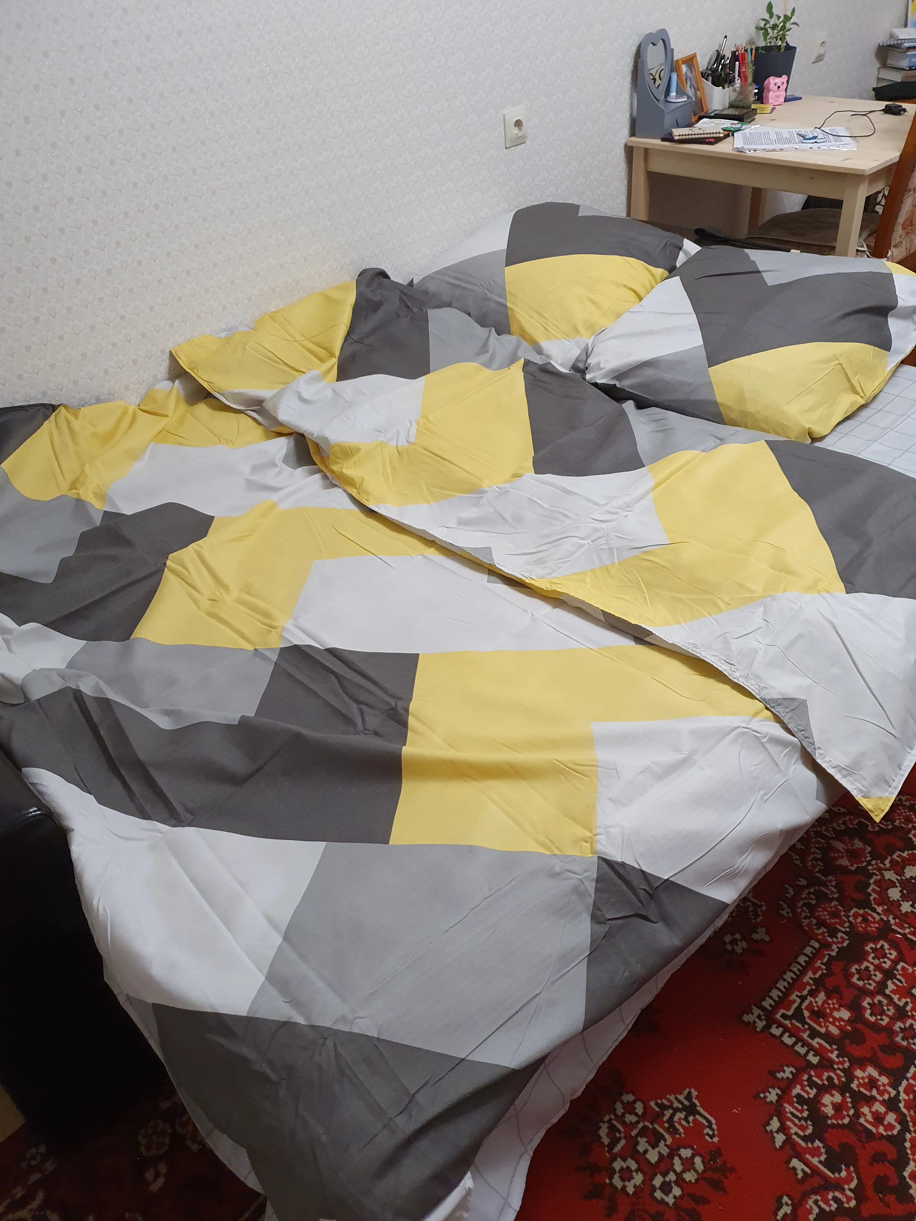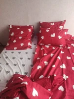 In Smolensk delivery literally in a couple of days, the quality of the linen is very good and pleasant, the only thing I noticed is that the pictures on the pillowcases have patterns too, but on my linen pillowcases are just red, but personally I like it so much, just wrote to mean, And the sheet is white with yellow hearts. Photo attached. Thanks to the seller and the price for the underwear is adequate.