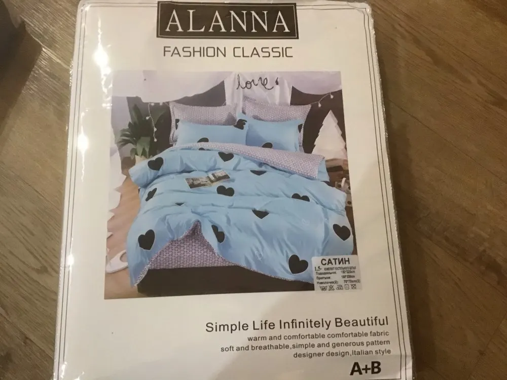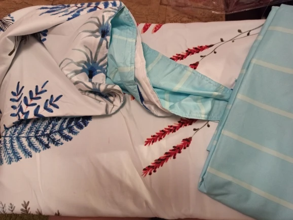 Underwear came very quickly through the Russian Federation, in 3 days. He brought a courier from the snack right home. The quality is good, written by Satin. The color corresponds to the photo (double-sided color at the duvet cover and pillowcases, blue sheet). Seams are smooth.