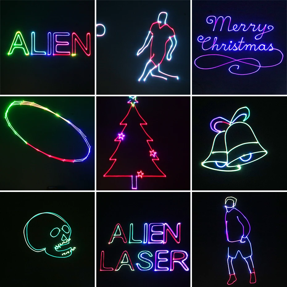 Specification: ALIEN RGB Bluetooth APP Distant Animation Laser Projector DMX512 Scanner DJ Disco Social gathering Vacation 500MW 1W 2W Stage Lighting Impact