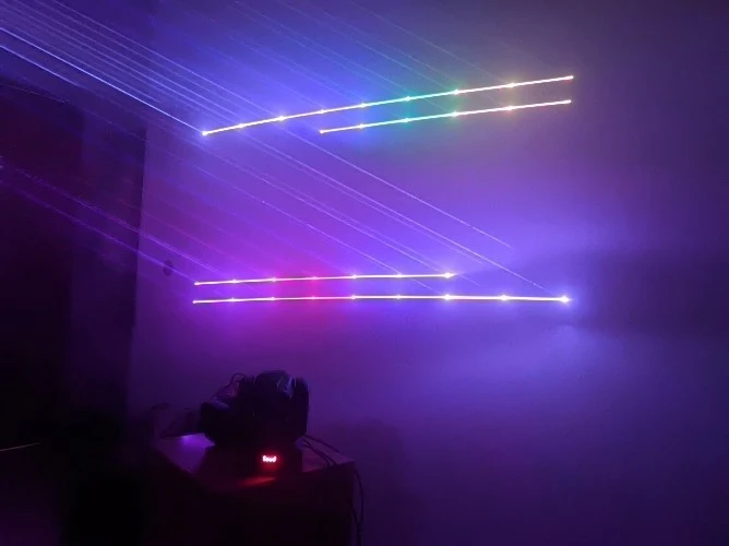 F6A-APP laser is a full-color Pink, Inexperienced, and Blue laser system. The laser sources guarantee good colours and highly effective laser beams. In APP you even have whole management and edit your brand or your phrases, Picture.