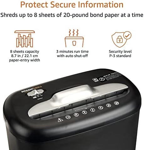 Amazon Fundamentals Cross Reduce Paper Shredder and Credit score Card Shredder with 4.1 Gallon Bin, 8 Sheet Capability