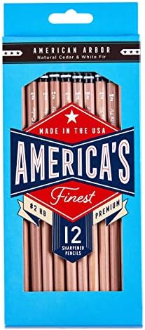 America’s Best Pre-Sharpened #2 Pencils, Made in USA, Responsibly Sourced Wooden Cased, HB Graphite Core, Pure Wooden Look, 12 Pack