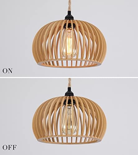 AMZASA Boho Plug in Wooden Pendant Hanging Gentle Fixture Rattan Wicker Woven Chandelier Gentle Fixture for Bed room Rest room Kitchen Eating Room