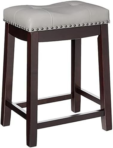 This Cambridge 24″ padded stool in espresso with grey upholstered seat and nail head trim is ideal for any counter house or excessive high desk. Set of two. Plush cushioned Seat with nail head trim 24″ Seat Top Meeting required
