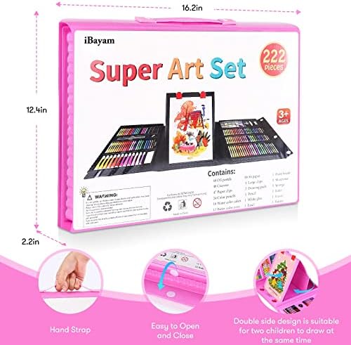 Artwork Equipment, iBayam 222 Pack Drawing Kits Artwork Provides for Children Ladies Boys Teenagers Artist 5 6 7 8 9 11 12, Freshmen Artwork Set Case with Trifold Easel, Sketch Pad, Coloring E-book, Pastels, Crayons, Pencils