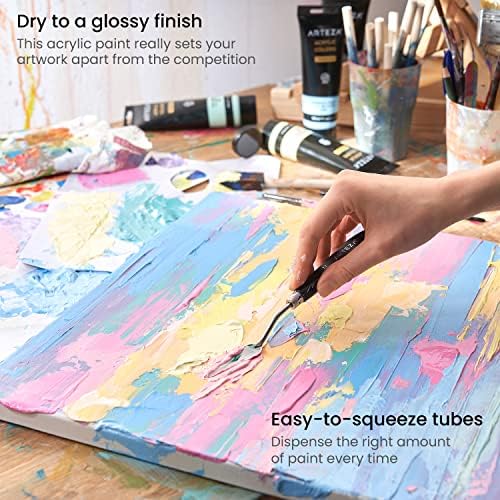 Arteza Acrylic Paint Set, 8 Pastel Colours, 4.06 fl oz Tubes, Excessive Viscosity Water-Primarily based Paint, Shiny End, Artwork Provides for Portray on Canvas, Parper, Wooden, Cloth, and DIY Tasks