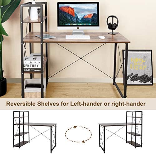 AuAg Laptop Desk with 4 Tier Storage Cabinets, 47” Dwelling Workplace Desk with Reversible Bookshelf, Writing Research Desk Workstation with Tower Shelf for Small House(Rustic Brown)