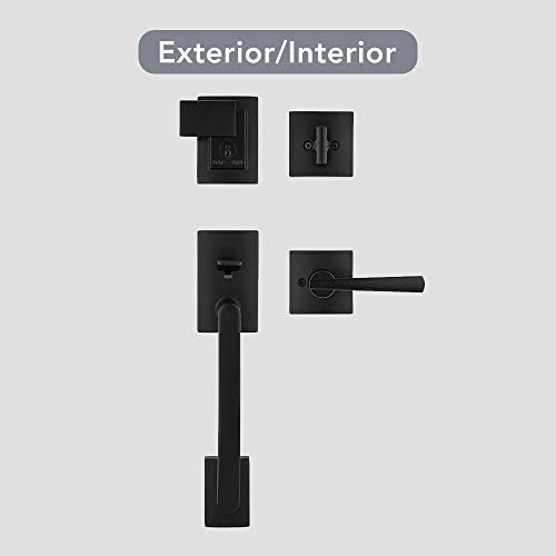 Baldwin Spyglass Single Cylinder Entrance Door Handleset That includes Microban Antimicrobial Safety and SmartKey Safety in Matte Black, Status Collection Slim Door Handleset and Sq. Lever