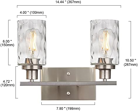 Banato Lighting 2-Gentle Rest room Vainness Gentle Fixtures, Fashionable Wall Sconces with Hammered Glass Shade, Brushed Nickel Completed Wall Lights for Dwelling Room Porch Hallway Bed room