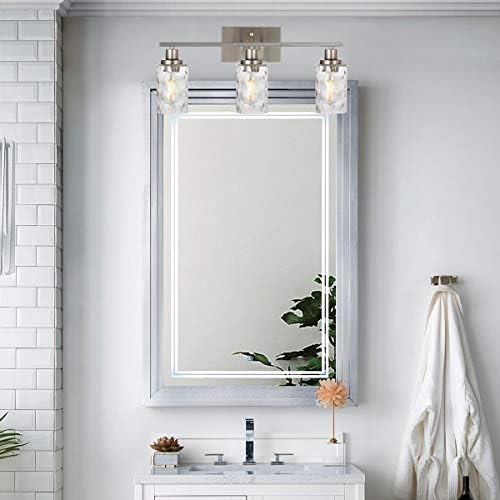 Banato Lighting 3-Gentle Fashionable Toilet Lighting Fixtures Over Mirror Brushed Nickel Completed, Industrial Self-importance Lights Wall Mount for Toilet Mirror Cupboard Dressing Desk, Hammered Glass Shade