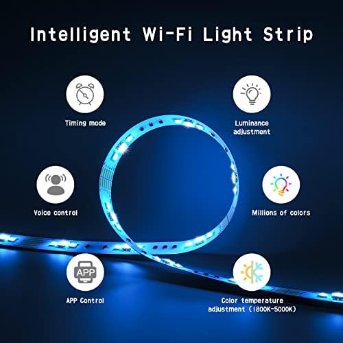 Sensible Wi-Fi Rgbcw Pre-cut Lights Strip: 9.8ft 6 PCS pre-cut strips, a number of connection choices, excellent on your cupboard, show case, TV stand, pc desk, mirror mild, and so on.