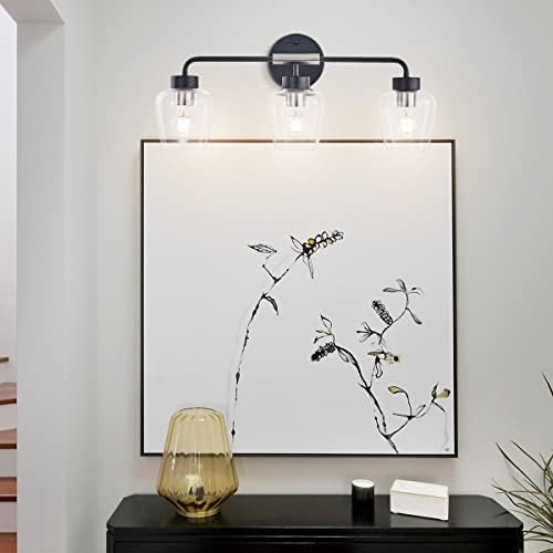 Rest room Self-importance Gentle Fixture 3-Gentle,Clear Glass,Brushed Nickel Contact,Matte Black Wall Gentle Fixture for Mirror,Powder Room