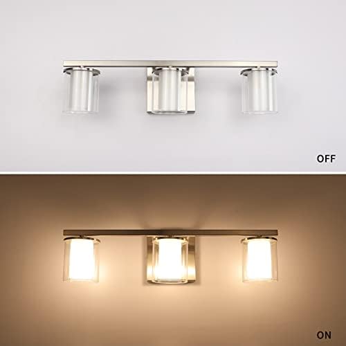 ☺HIGH QUALITY MATERIALS:Excessive grade {hardware} materials, need to go up brushed nickel coloration, not simple to rust, swimsuit toilet to make use of. Even in a moist place, the lavatory mild fixture can work completely for years and keep its good look. Created an expensive refined toilet vainness lighting surroundings.