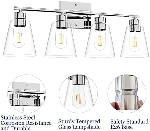 Be the first to review “Toilet Self-importance Mild Fixtures Chrome, 4-Mild Toilet Mild Fixtures Over Mirror with Clear Glass Shade, E26 Self-importance Mild Wall Sconce for Bed room Hallway Farmhouse”